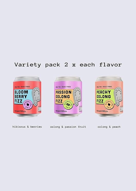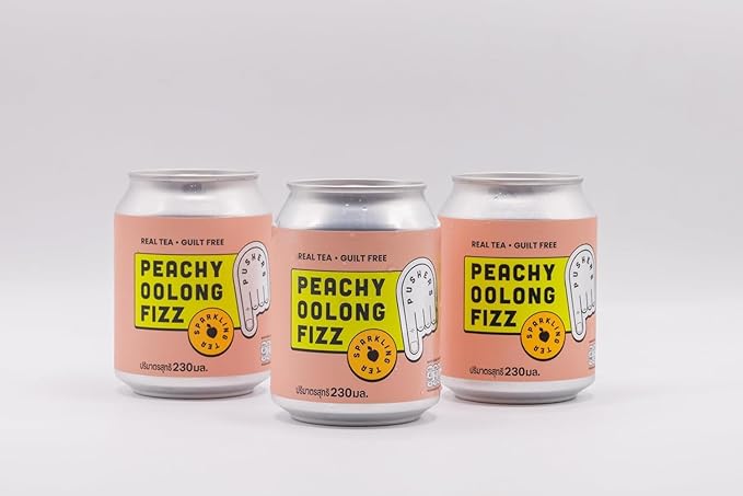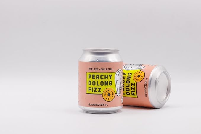 Our sparkling oolong with peach. A low calorie super crisp, fizzy tea made with medium roast Fujian oolong tea and white peach.