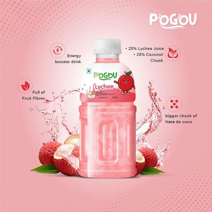 Pogou Lychee Juice with Nata de Coco is a harmonious blend of succulent lychee juice and chewy nata de coco. Crafted from the finest ingredients, this drink delivers a unique taste of tropical Thailand in every sip, perfect for those who seek a refreshing and exotic beverage experience.